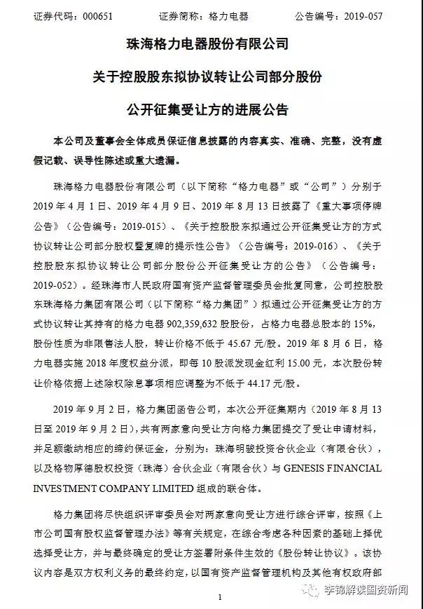 自4月8日晚间,格力电器公告透露第一大股东格力集团拟转让15%股权的消息后,各种猜测纷至沓来。很快在5月,淡马锡、富士康、厚朴投资、高瓴资本等资本巨头领衔的25家投资机构参与了股权转让项目意向投资者见面会。到了8月12日晚间,格力电器发布公告,珠海国资委已经原则同意《格力电器国有股权转让项目公开征集受让方方案》,这也意味着,是格力电器国有股权转让,3个月后珠海国资委已才“'原则同意”。也就是由职业经理人提出,出资人后来同意的,给人感觉这是一场由职业经理人主导的改革。
