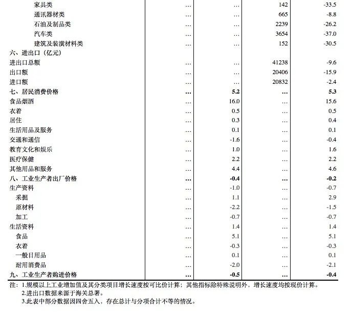 (1)规模以上工业增加值及其分类项目增长速度按可比价计算,为实际增长速度;其他指标除特殊说明外,均按现价计算,为名义增长速度。