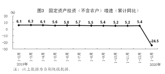 1-2月份,全国固定资产投资(不含农户)33323亿元,同比下降24.5%。
