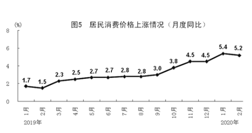 1-2月份,全国居民消费价格同比上涨5.3%。