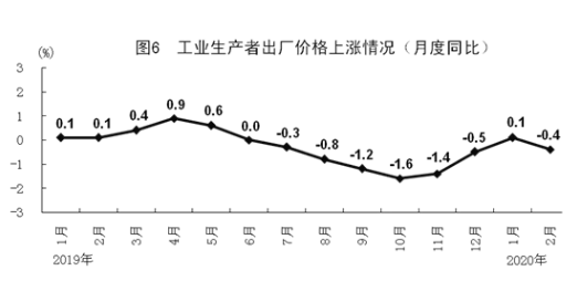 1-2月份,全国工业生产者出厂价格同比下降0.2%。分月看,1月份全国工业生产者出厂价格同比上涨0.1%,环比持平;2月份全国工业生产者出厂价格同比下降0.4%,环比下降0.5%。1-2月份,全国工业生产者购进价格同比下降0.4%。